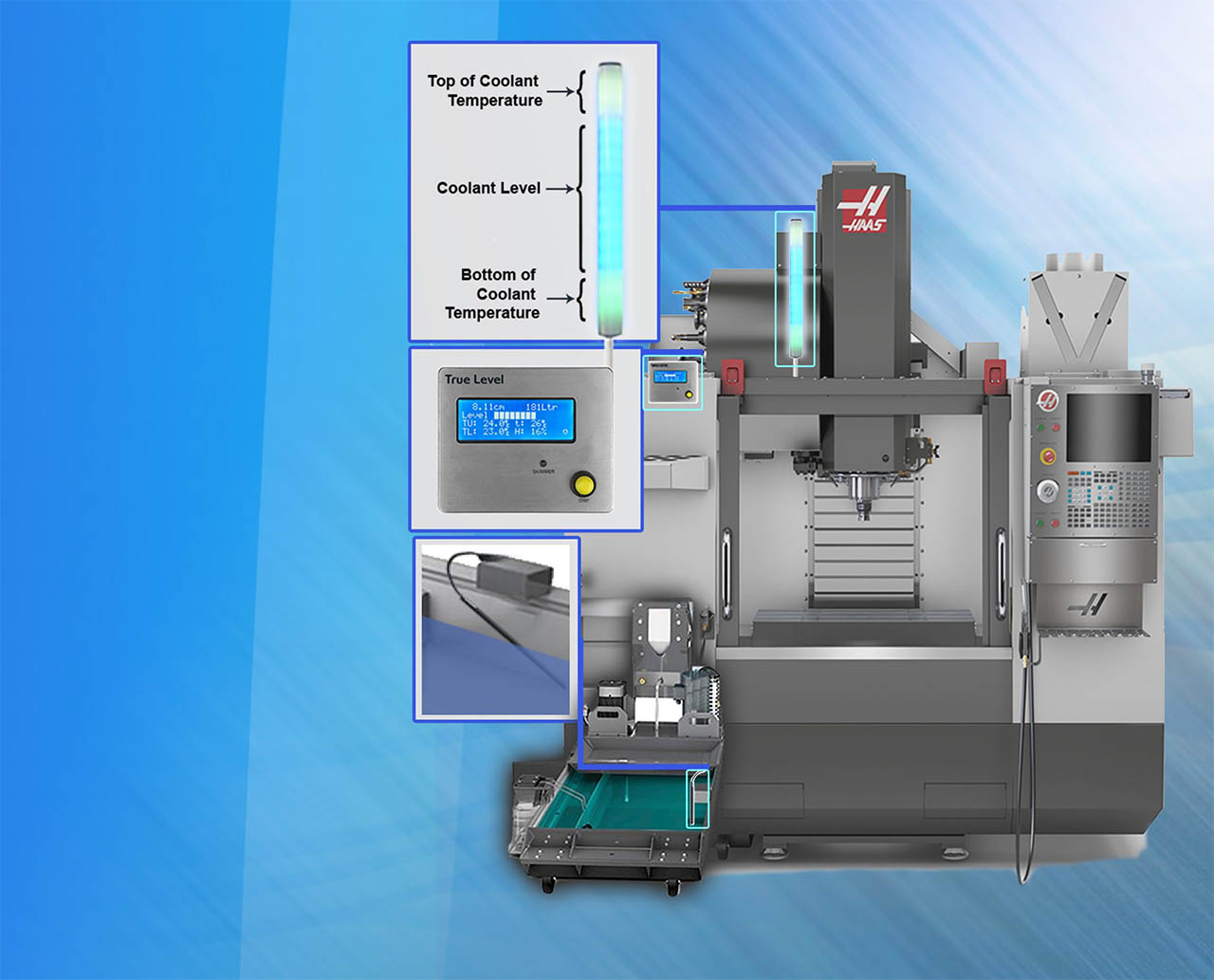 Pro-grade coolant visibility for real shops. See level. Track temperature. Control tramp oil. All in one simple device.